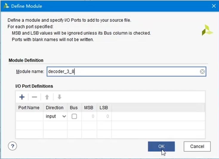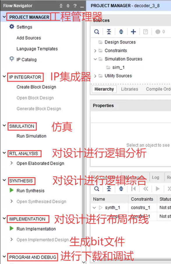 设计定义就是实现了上面介绍的三八译码器功能,所以这里的设计定义可以忽略,这是已经被定义好的典型功能。