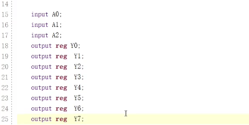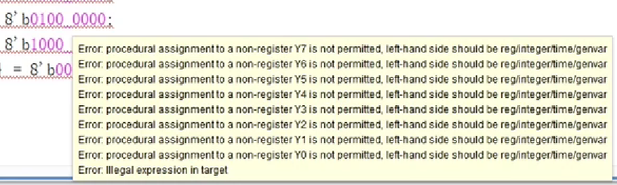 也就是说对Y0到Y7在过程赋值语句中赋值了,这些信号就必须被定义为reg类型
