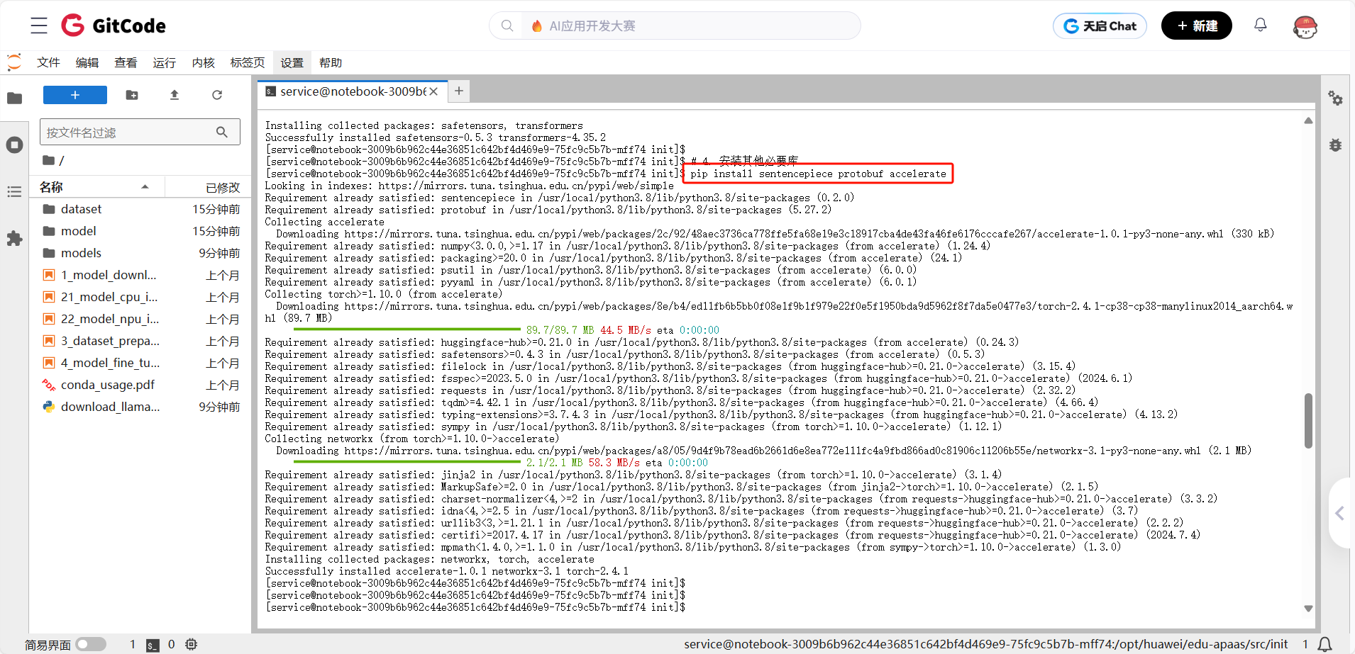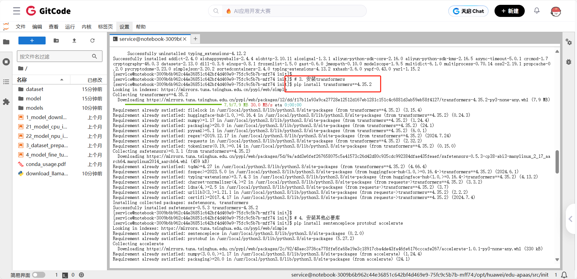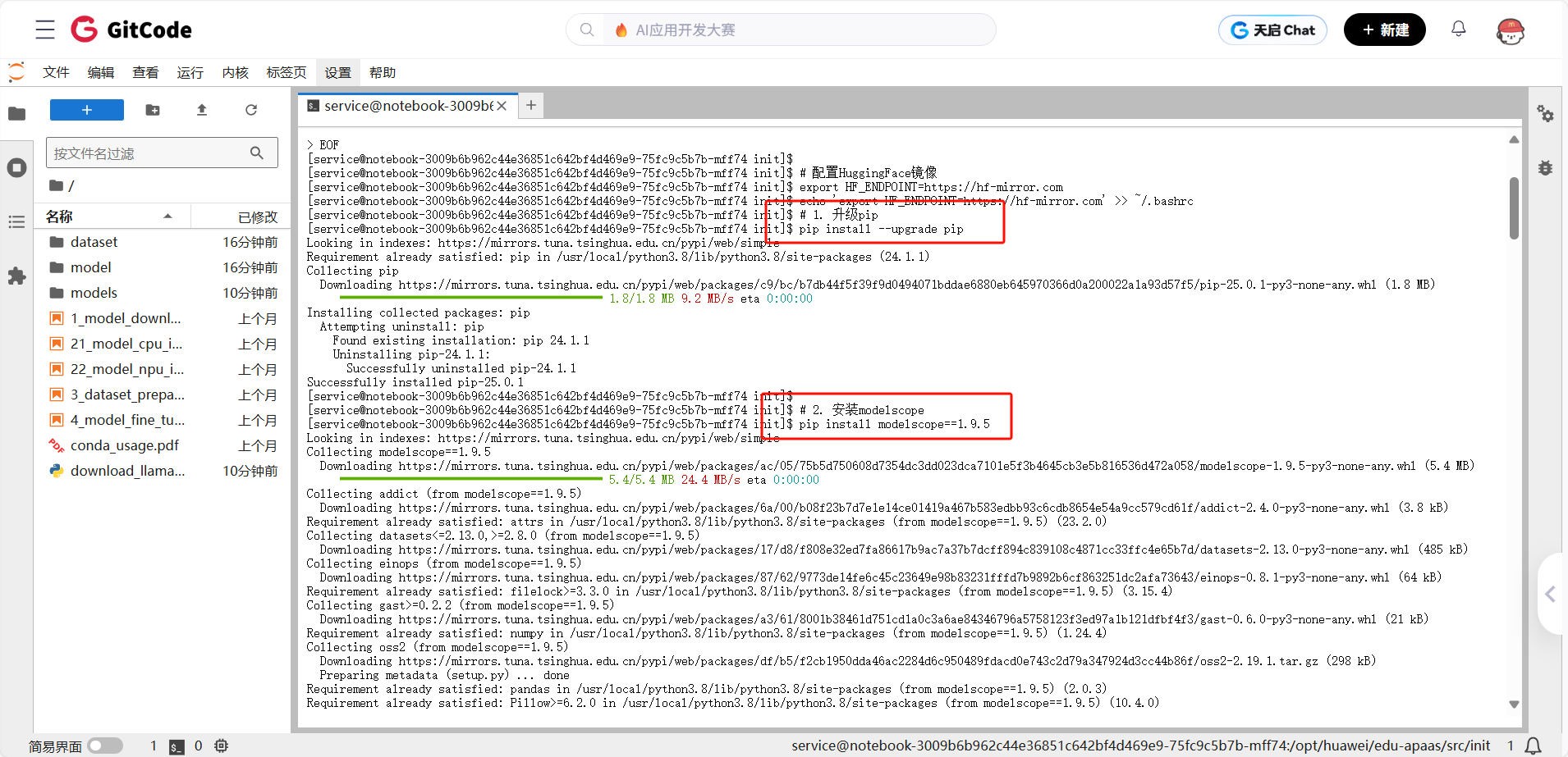重要说明 :你的镜像已经预装了MindSpore,不需要安装PyTorch和torch_npu!直接安装模型下载工具即可。