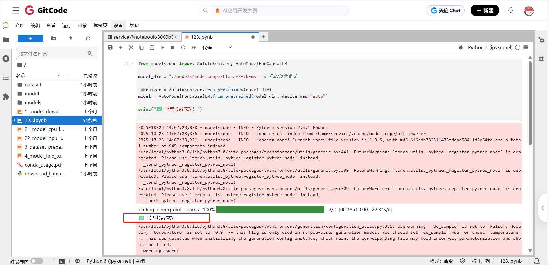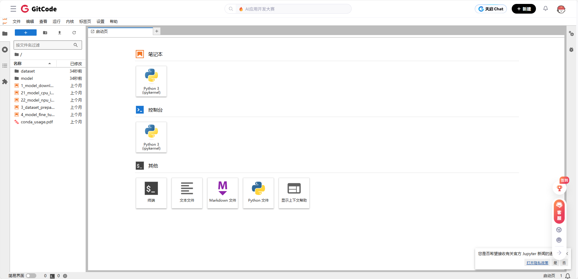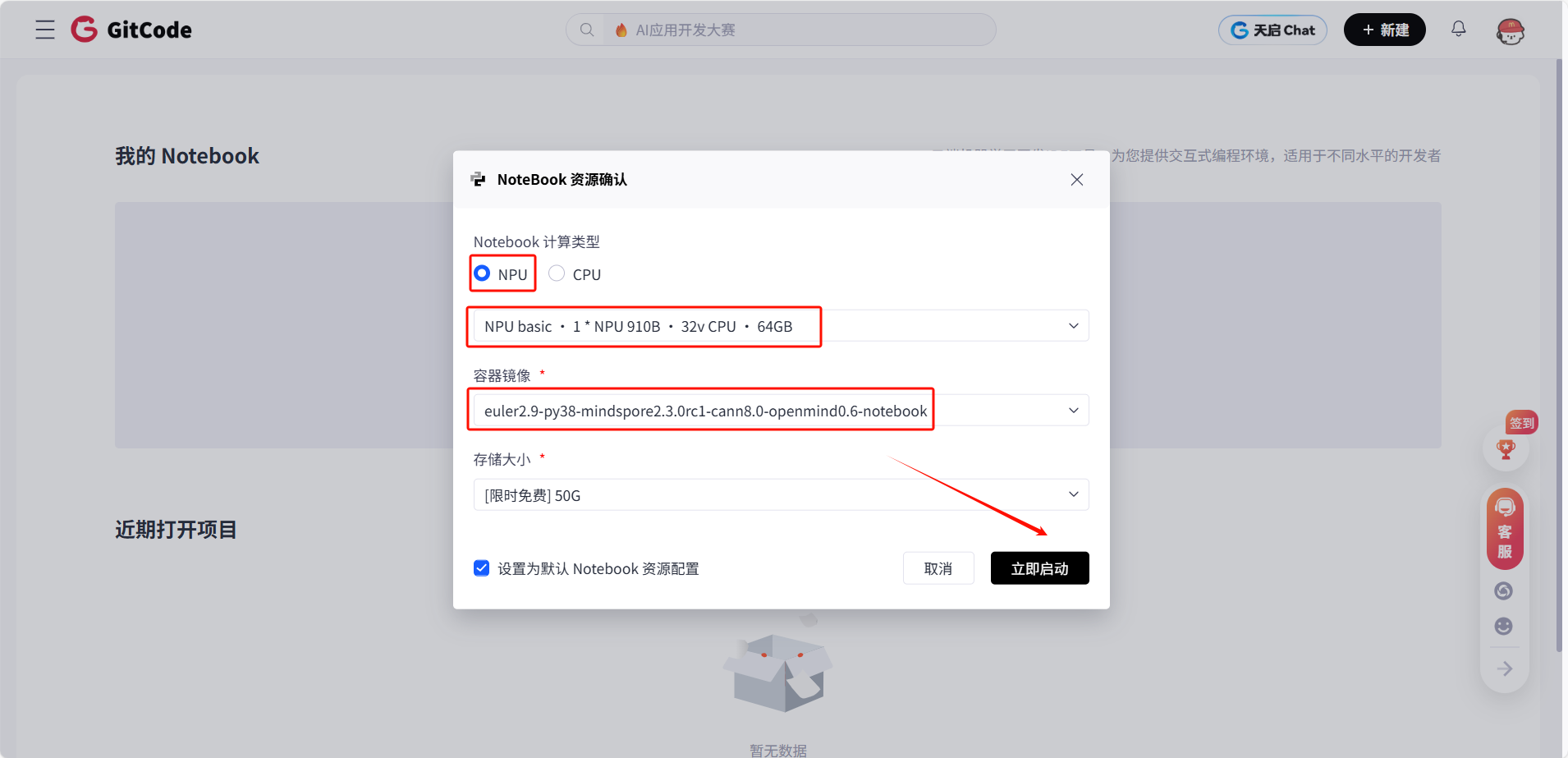 现在GitCode提供了免费的昇腾Notebook实例,虽然是限时的,但用来测试模型完全够了。