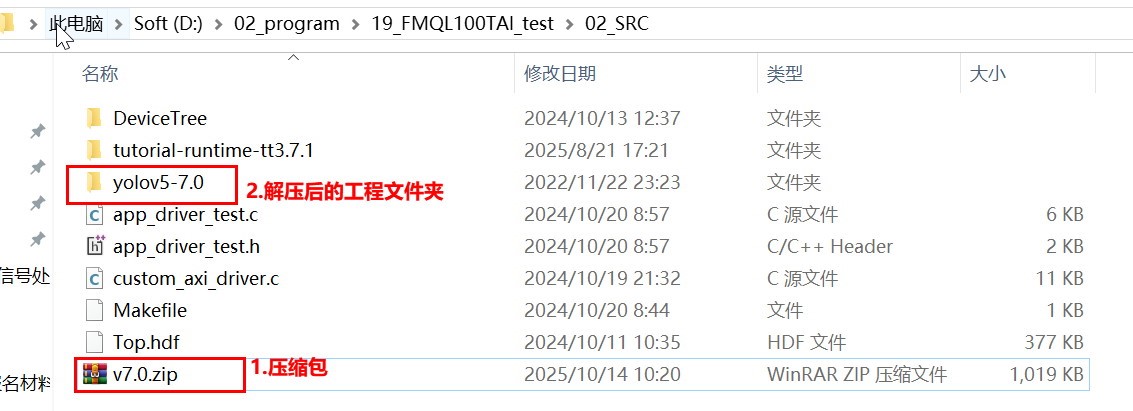 2、拷贝yolov5.7源码压缩包到工作目录,并解压,如下所示: