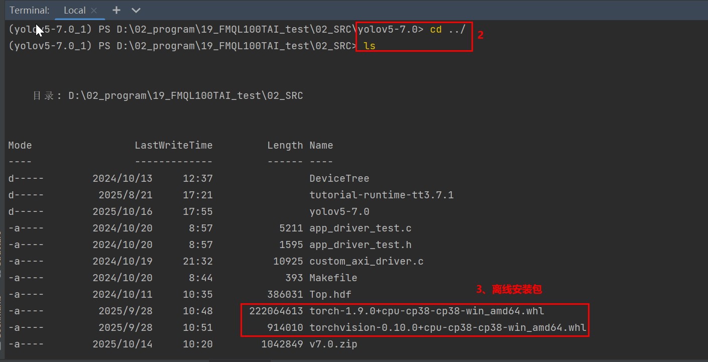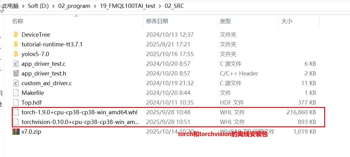 3、拷贝下载的Pytorch(V1.9)和torchvision(V0.10.0)的离线软件安装包到工作目录如下图所示: