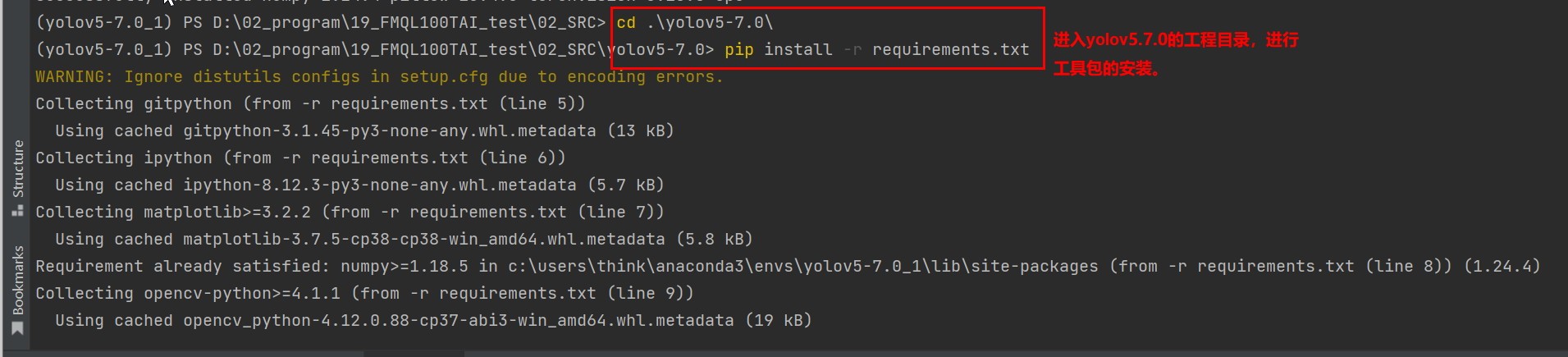 5、进入yolov5.7.0的工程目录,运行如下指令进行yolov5的官方要求环境搭建(注意:保持计算机连接网络)。