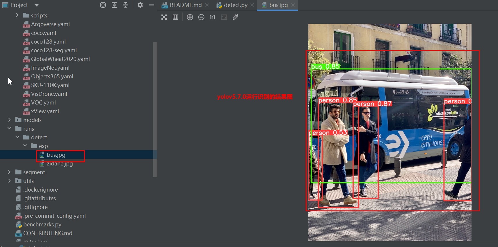 图12 yolov5.7.0默认使用coco数据识别的结果