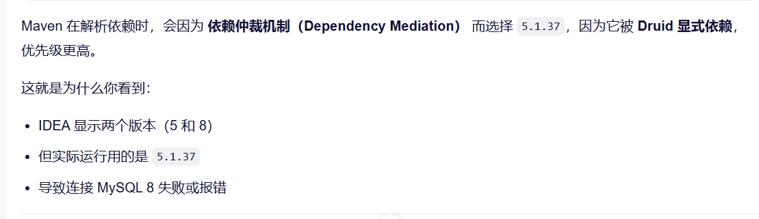 这说明:你项目里同时存在两个版本的 MySQL JDBC 驱动,但 Maven 最终只用了旧版(5.1.37),而新版(8.0.33)可能被依赖冲突排除了。