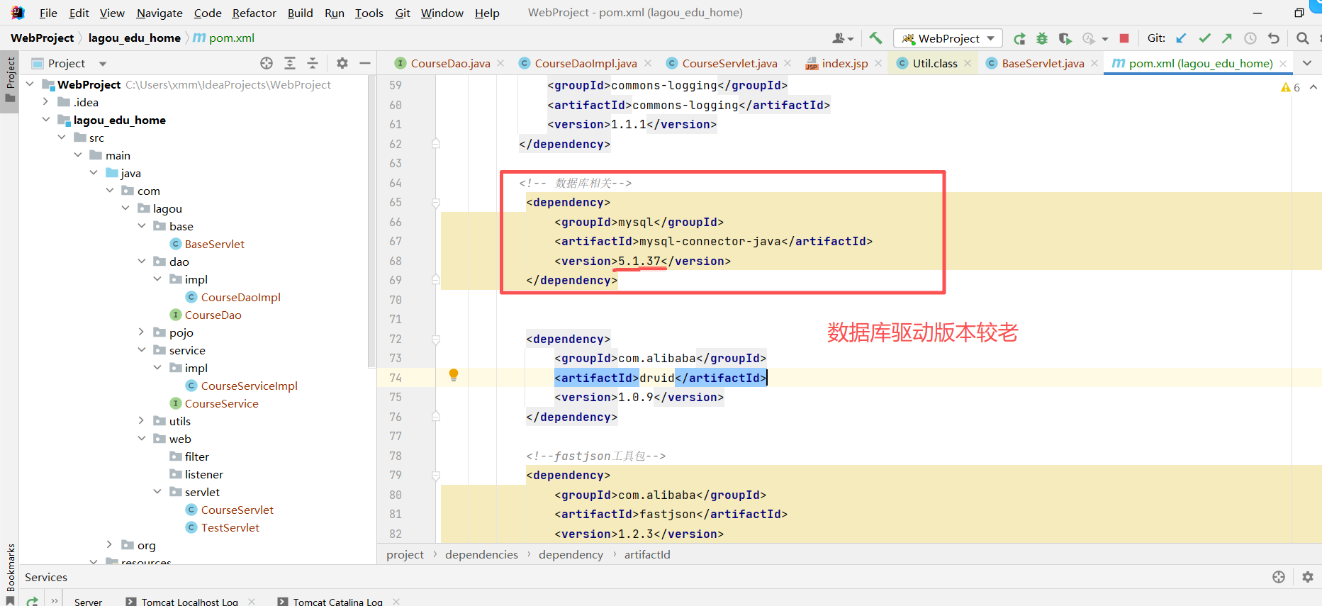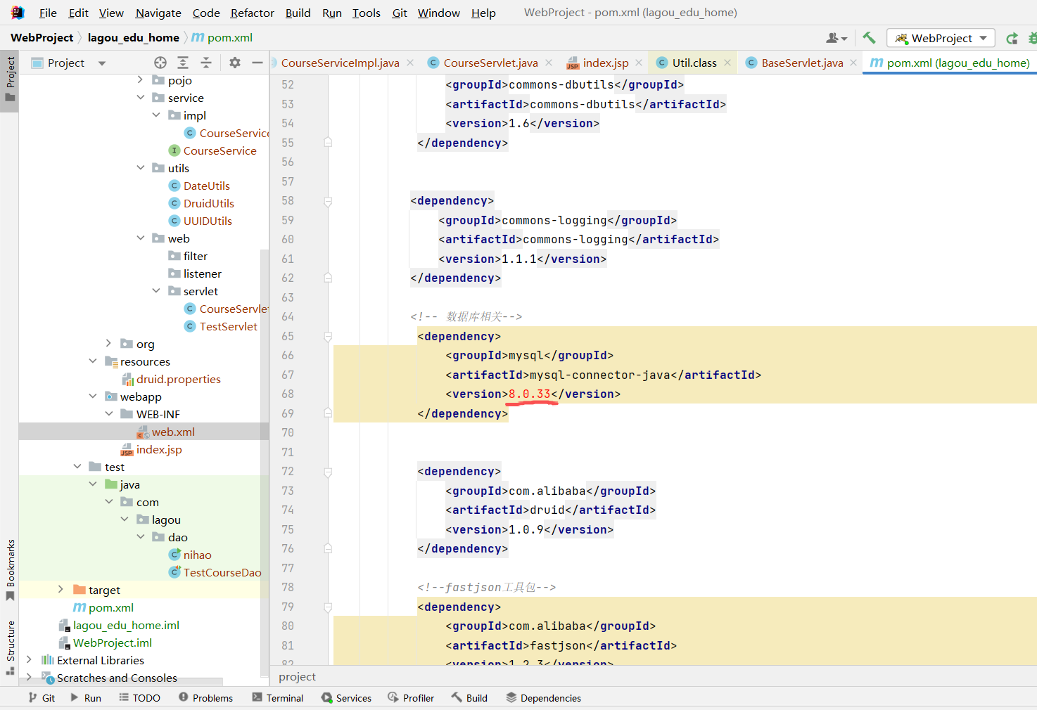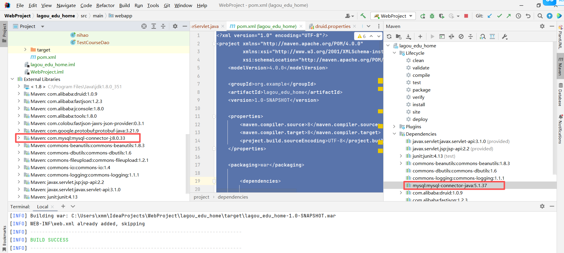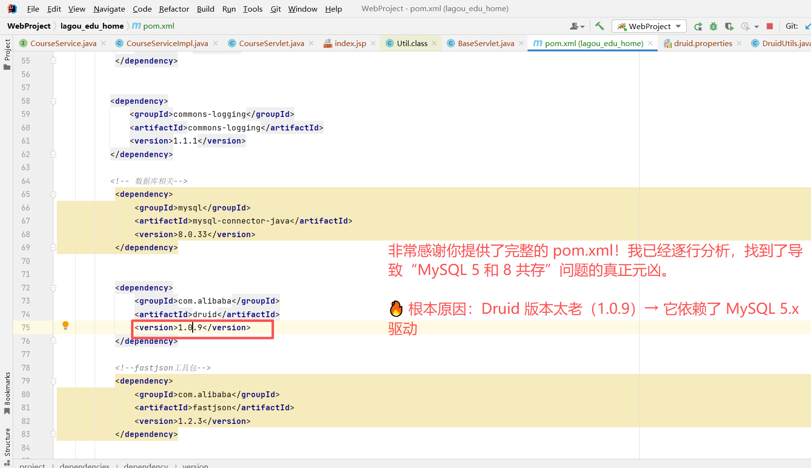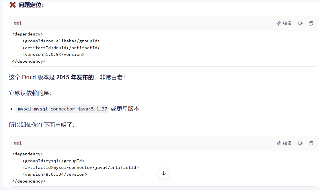 问题2:在pom.xml中mysql-connector-java的版本太老