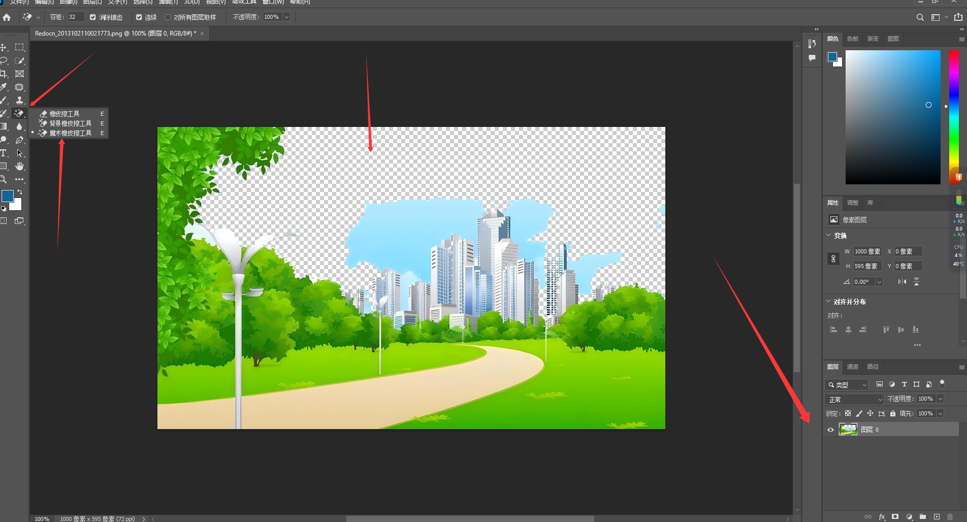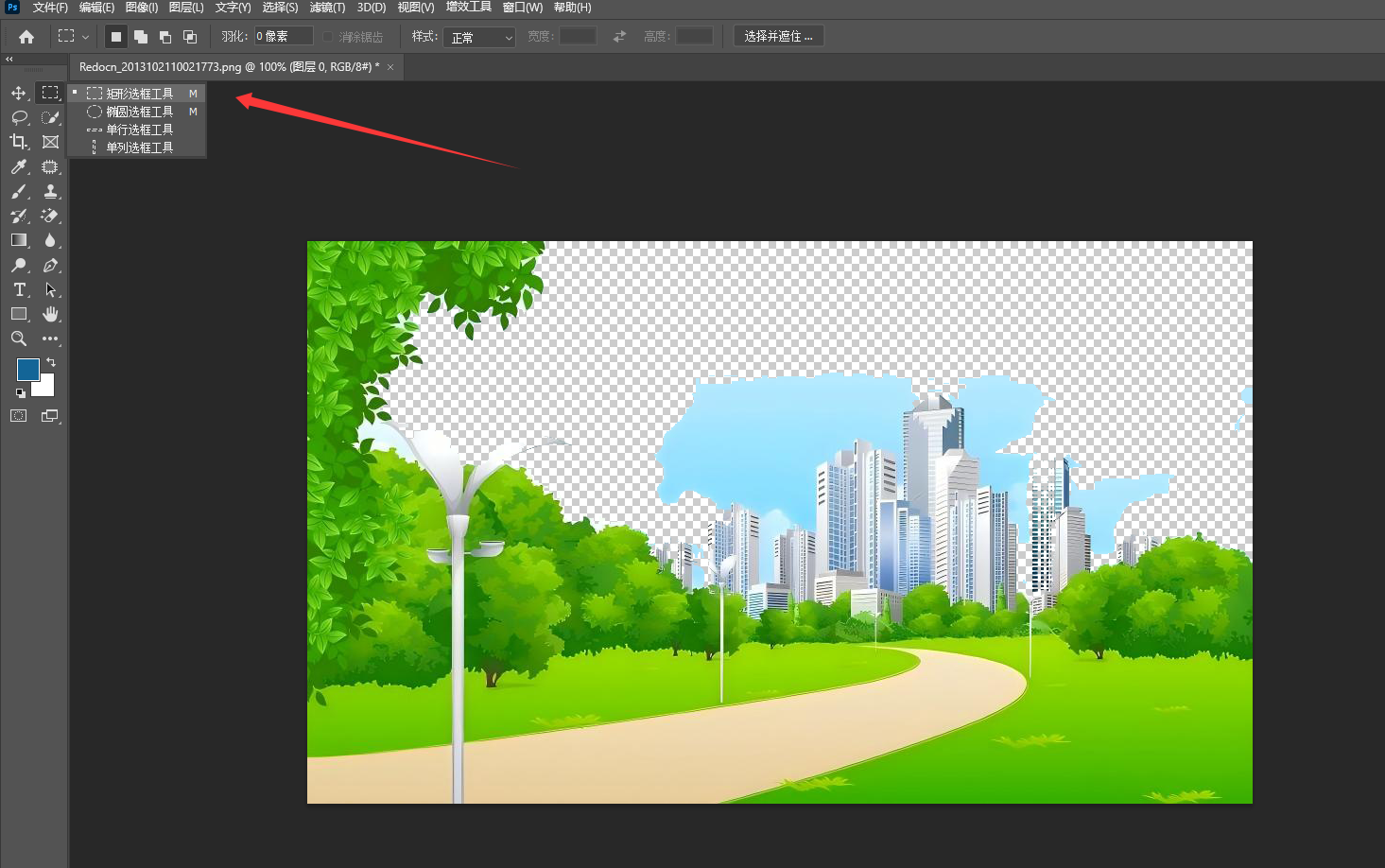 2.将图片导入ps中 点击魔术橡皮擦工具 点击白色部分即可