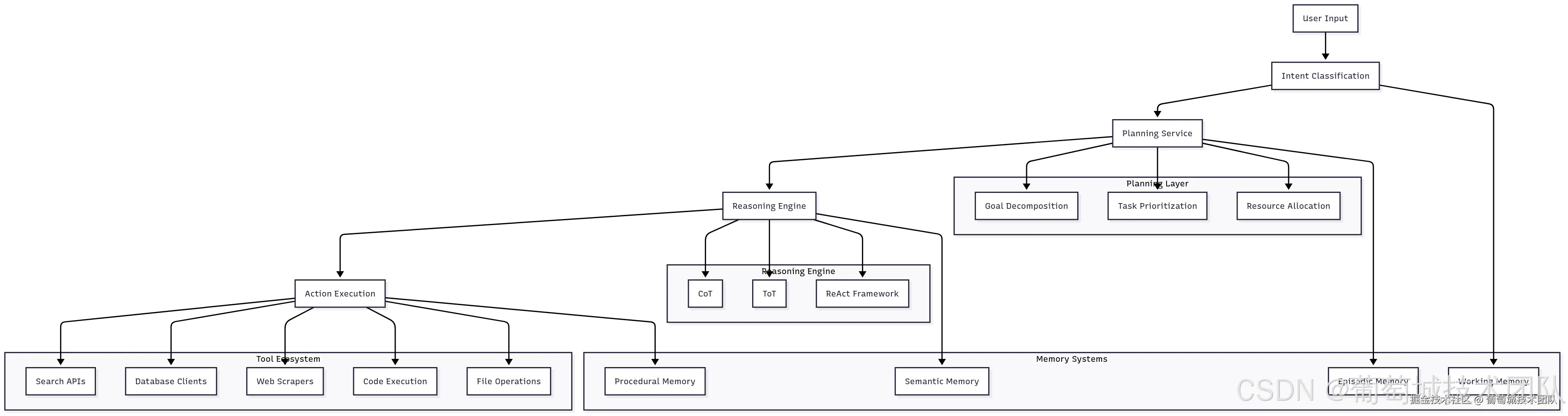 - 工具性能监控:每个工具集成点均需监控性能、可靠性和成本指标,这些数据将反馈至规划系统,为工具选择决策提供依据。