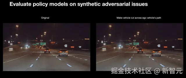 同时,一些长尾场景,诸如行人横穿马路、车辆加塞,AI 都可以直接「脑补」生成。
