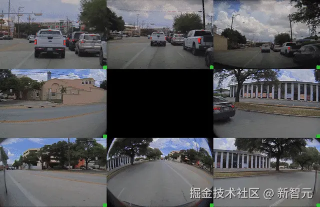 如下所示,神经网络成功合成 8 个摄像头、24 帧 / 秒的连续画面,一次直出长达 6 分钟的逼真驾驶体验,细节还原度惊人。