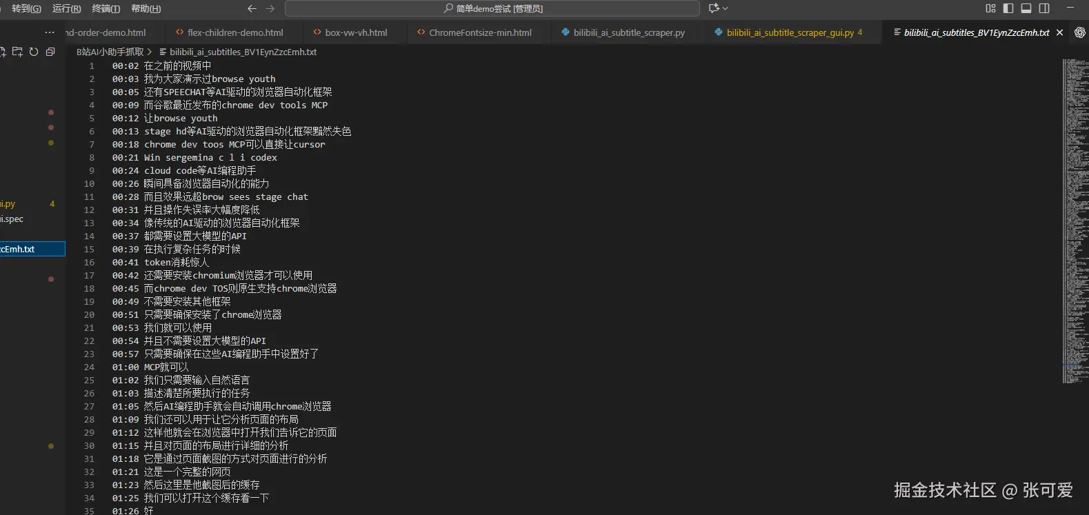 🚀 本文记录了我从一个前端控制台脚本,逐步进化到用 Python + Selenium 自动化抓取 B 站 "AI 小助手" 字幕,再到打包成 EXE 的全过程。