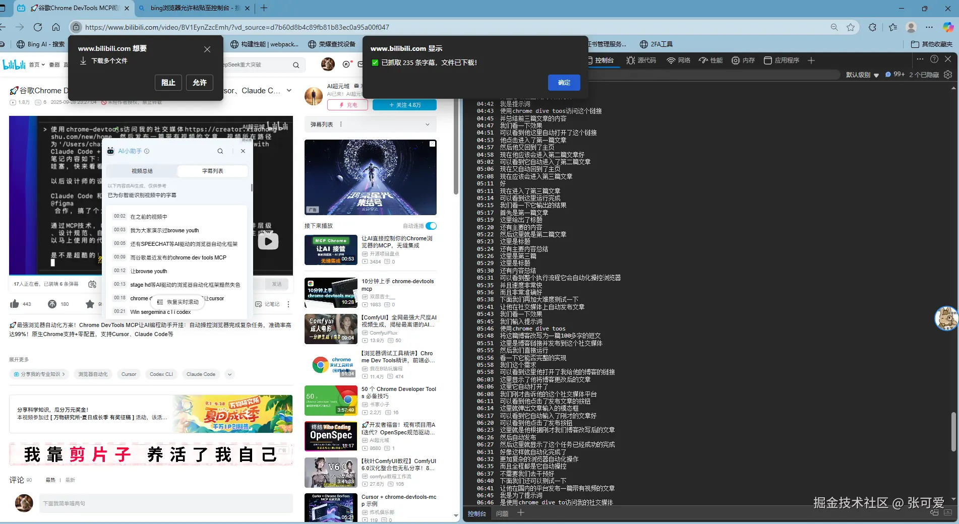 最初的需求很简单:我想把 B 站视频中 "AI 小助手" 的字幕全部抓下来。