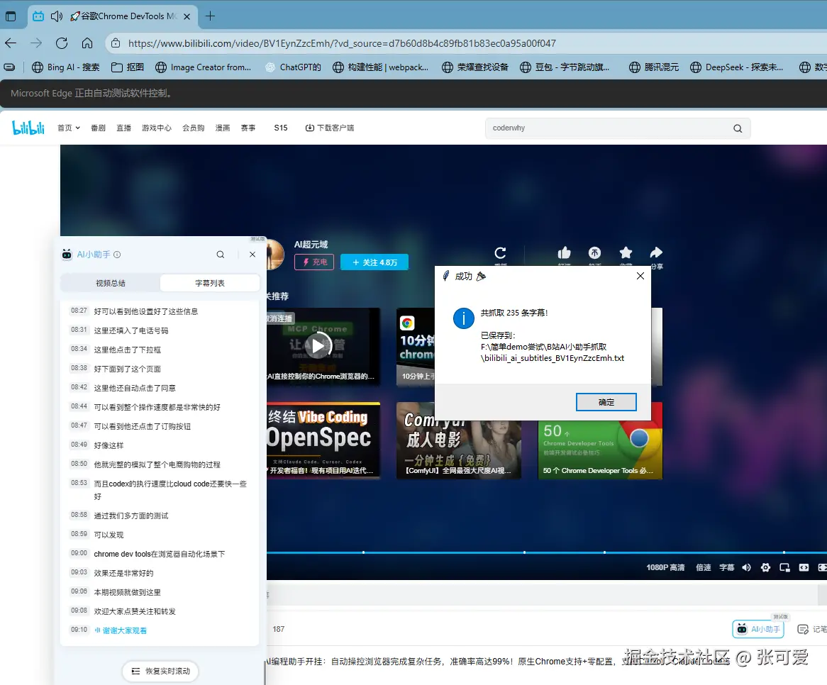 期间经历了浏览器防粘贴、Edge 启动崩溃、进程冲突等各种小坑,最终实现了"一键运行自动导出字幕文件"的完整自动化流程。