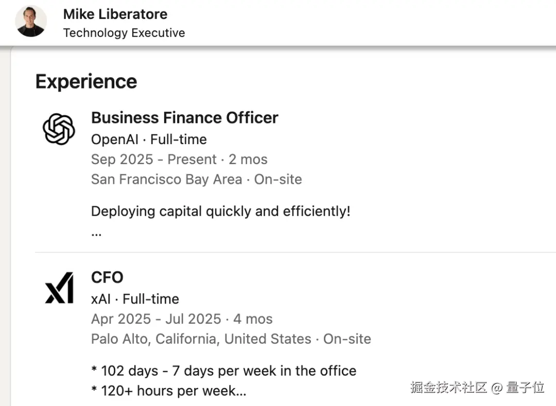 奥特曼正在扩充他的顾问团队,9 月份刚挖来了马斯克 xAI 前 CFO Mike Liberatore 担任业务财务官,或许还有更多的大交易还在路上。