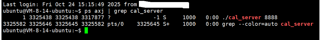 ps axj | grep cal_server