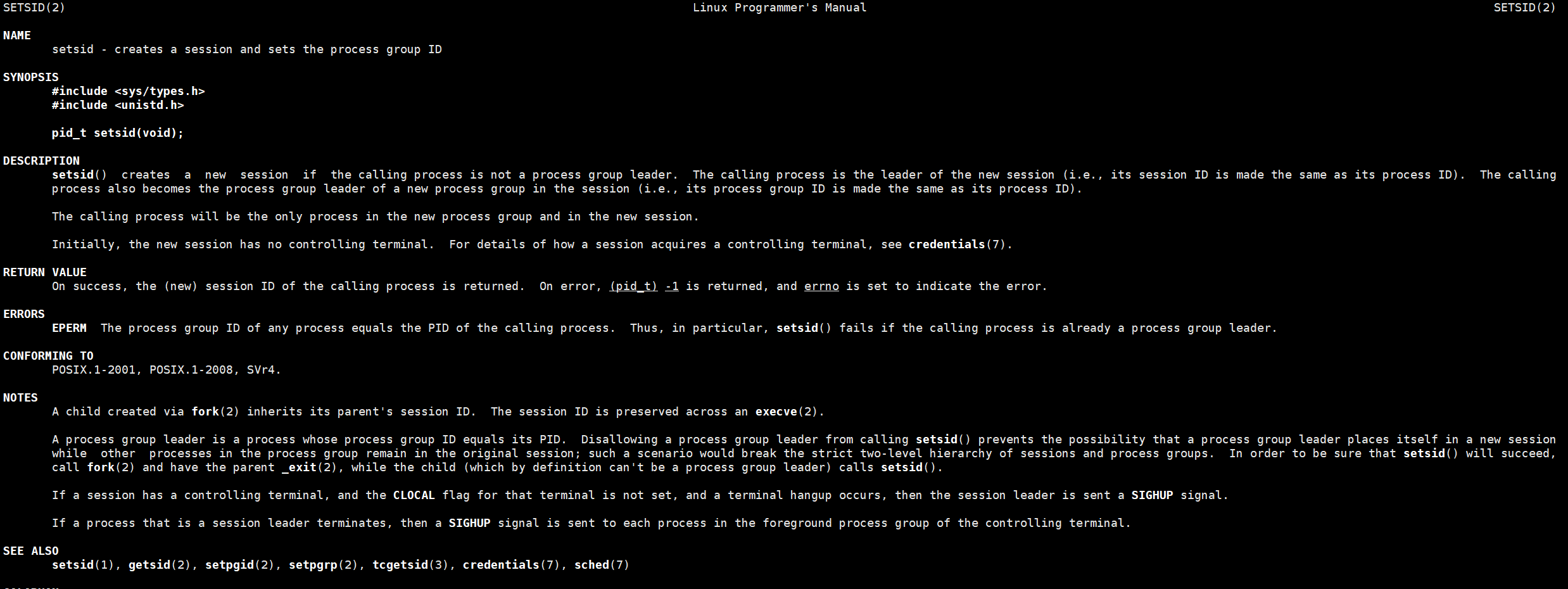 pid_t setsid(void);