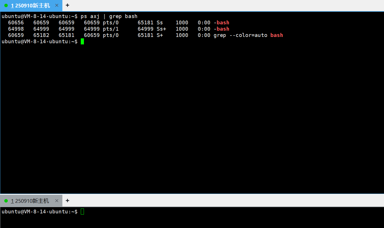 又可以看到他们的SID、TTY是一样的。tty说明了他们俩往同一个终端文件中打印,sid竟然就是bash所对应的会话。