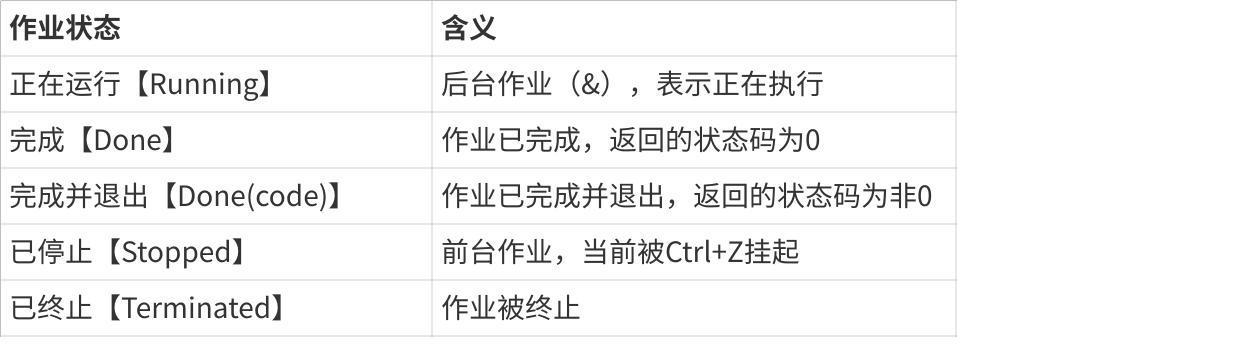 Shell 分前后台来控制的不是进程而是作业 或者进程组。一个前台作业可以由多 个进程组成,一个后台作业也可以由多个进程组成,Shell 可以同时运⾏一个前台 作业和任意多个后台作业,这称为作业控制。
