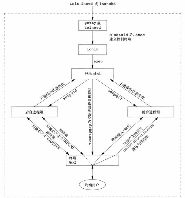 注意: 主要某个进程组中有一个进程存在, 则该进程组就存在, 这与其组长进程是否已经终 止无关。