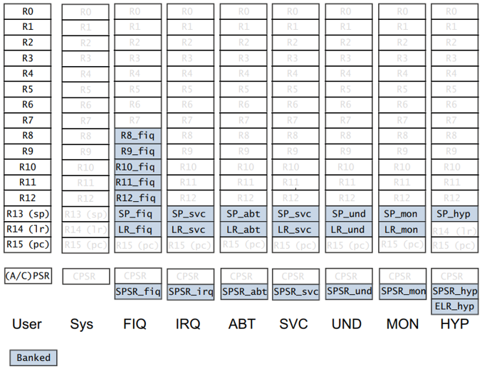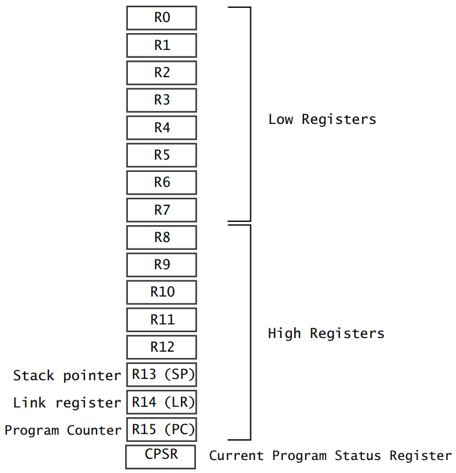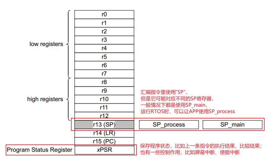 (2)R0-R15寄存器中,R0~R12一般为通用寄存器;对于R13、R14、R15,还另有用途: