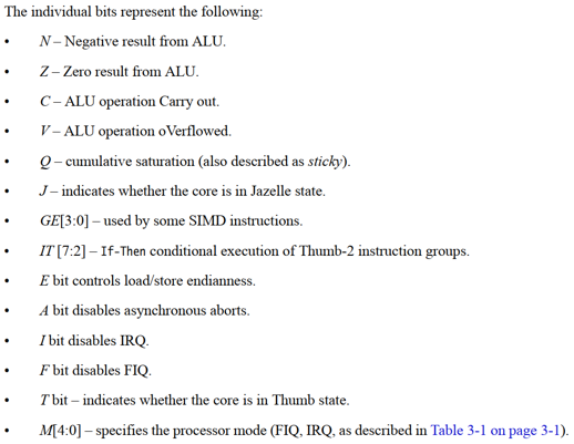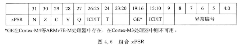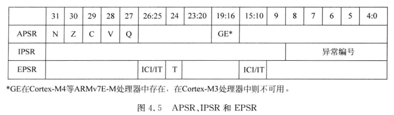 (1)对于cortex-M3/M4来说,xPSR实际上对应3个寄存器,这3个寄存器的如下所示:
