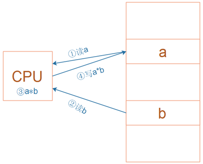 (3)在CPU内部,用什么来保存a、b、a*b ?答案是CPU内部寄存器。