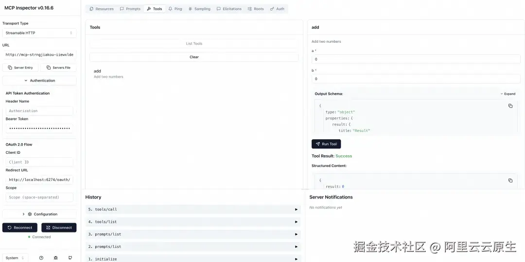 点击 Connect 之后,发起会话,后续就可以使用 MCP Streamable HTTP 提供的服务了。