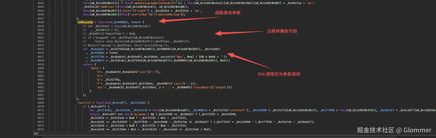 该函数之前通过调用 this 中的值来计算, 现在我们改为传入数组参数, 所以要对代码做一些改动, 同时删掉一些和加密无关的兼容代码。