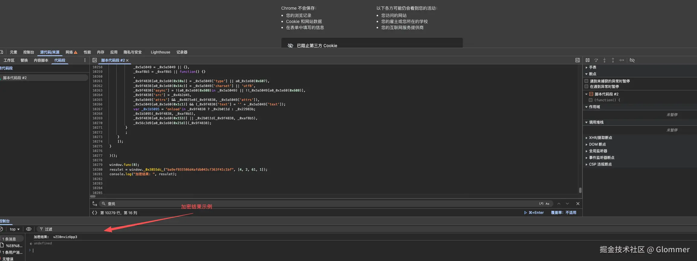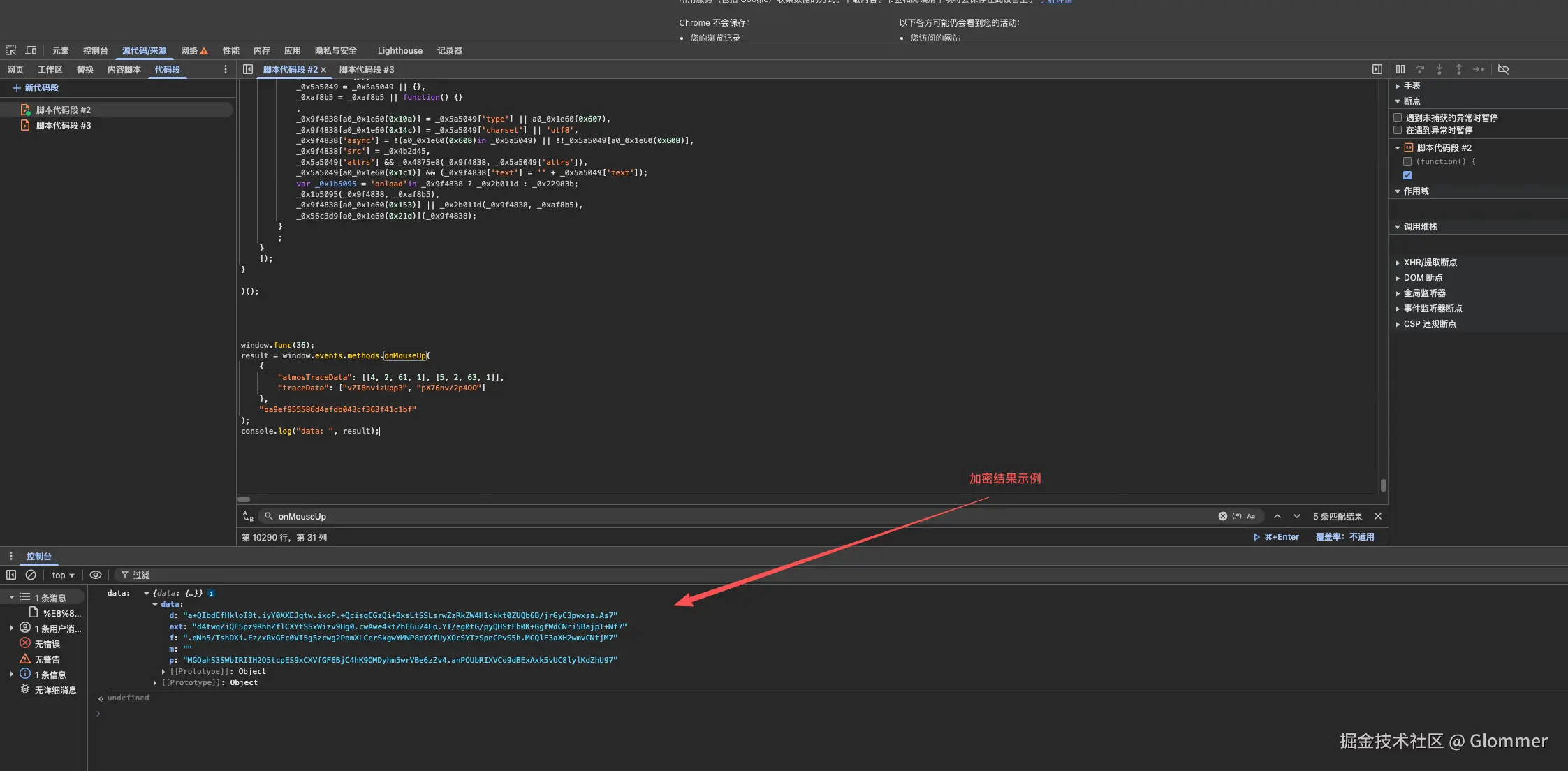 函数逻辑还是在 webpack 中, 位于第 8 个参数函数内, 跟之前的做法一样, 首先将其全局化, 拿到加密结果就算成功。