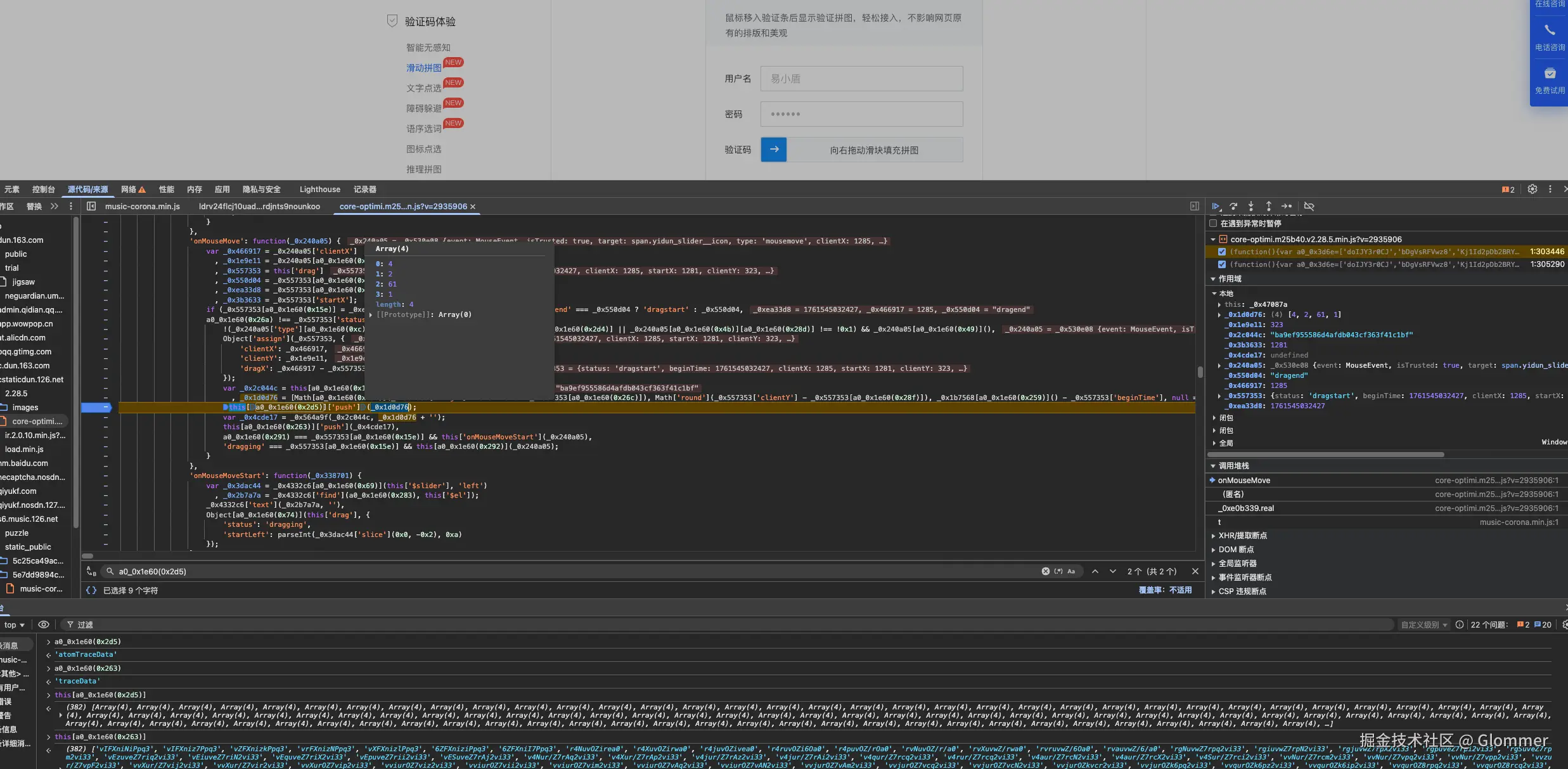 - 滑动轨迹, 模拟的时候可以在 push 那个位置加上一个日志断点, 看看正常浏览器采集的数据是怎么样的作为参考。