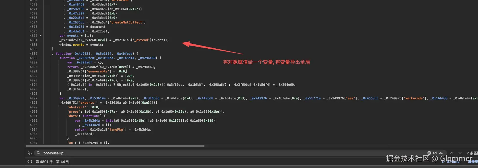 mouseUp 函数在第 36 个参数函数中的一个临时变量中, 无法直接获取, 所以我选择把他先赋值给一个变量, 然后再把变量全局化。