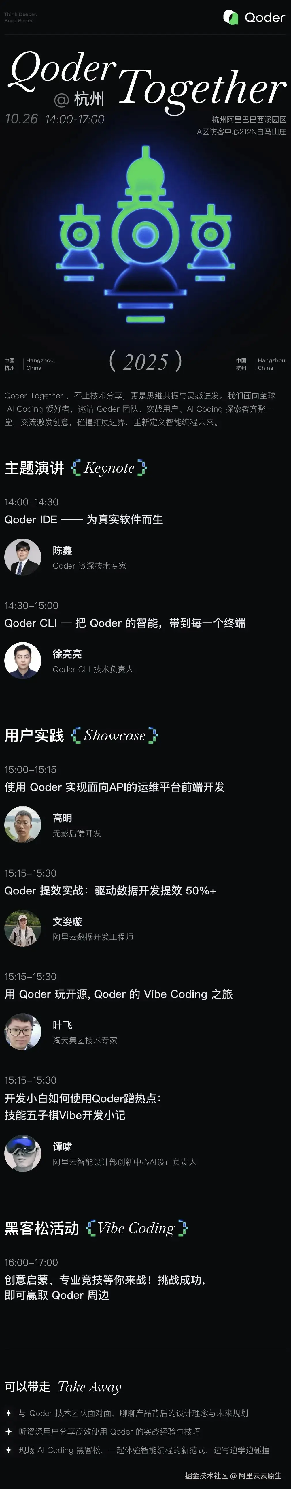 阿里巴巴 AI Coding 分享会 Qoder Together 杭州站来啦!