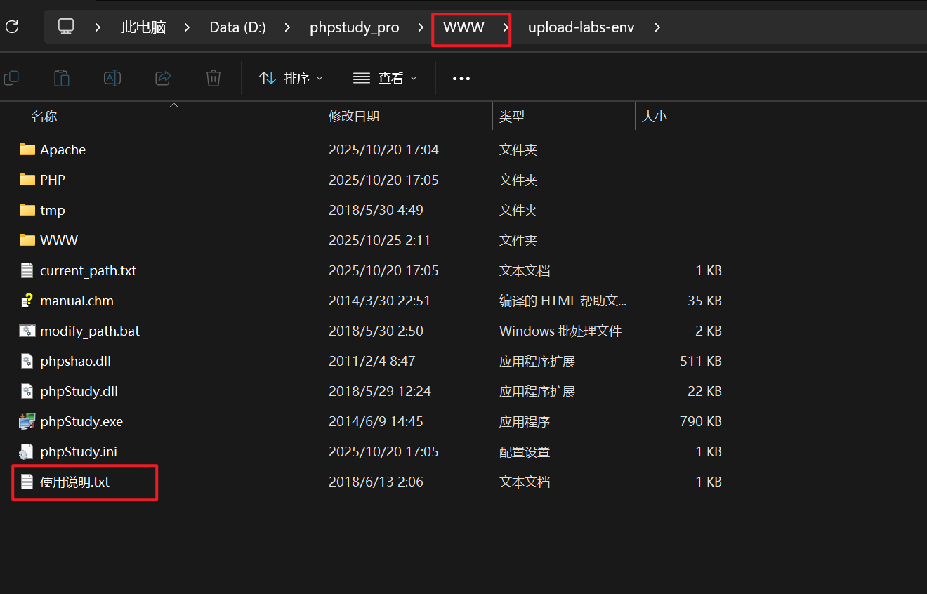 读完使用说明后,运行集成环境,在本地浏览器访问地址:127.0.0.1/upload-labs 。