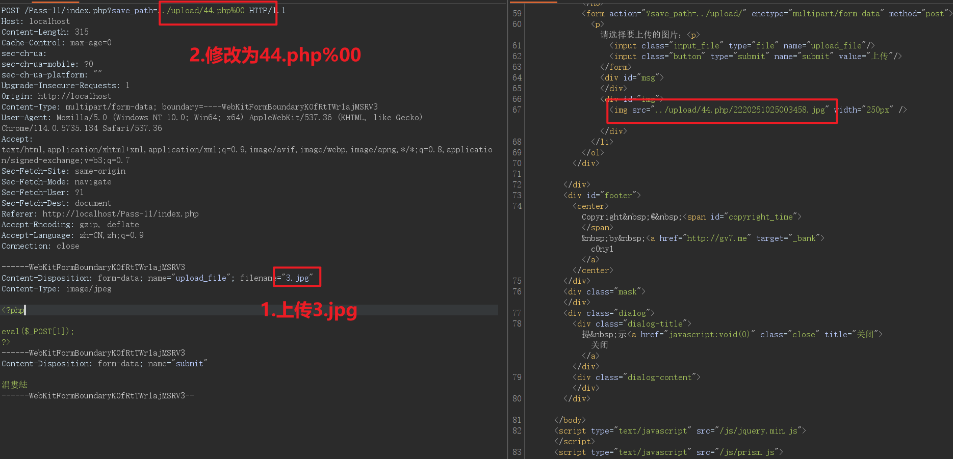 我们传一个3.jpg的图片,然后在保存路径修改为xxx.php%00。这里我修改成44.php