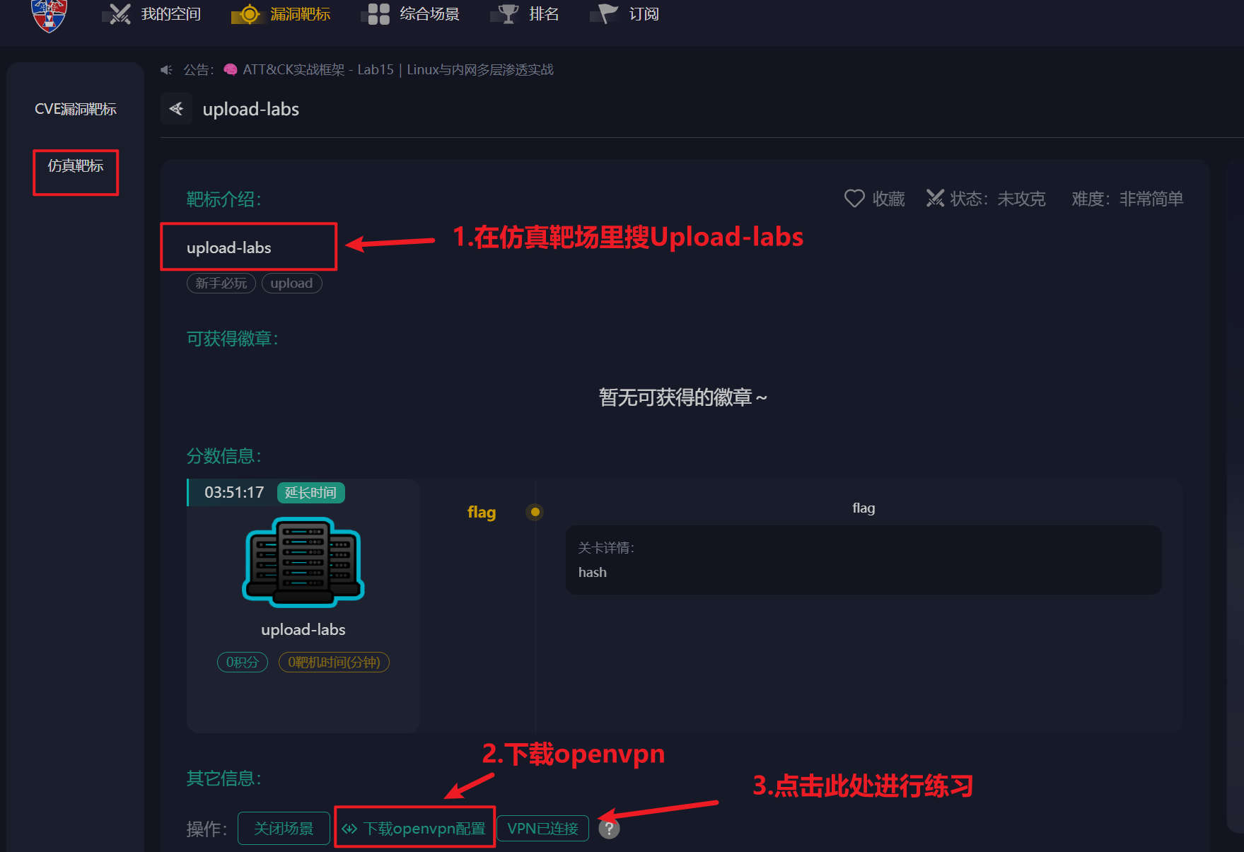 upload-labs 收集了CTF比赛中遇到的各种上传漏洞的靶场,每一关都包含着不同上传方式。目前我使用的是总计20关的靶场,为了更突出比赛实战化,第一关到第十关我是在cyberstrikelab网络安全仿真平台练习,