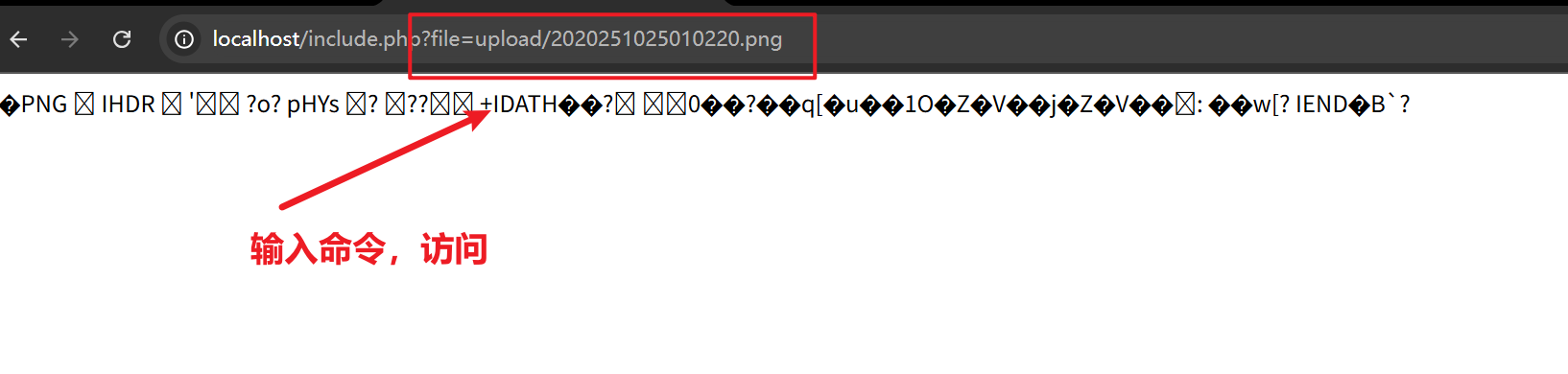 (5)在文件包含漏洞的URL中,通过file命令插入刚才记下的位置?file=upload/2020251025010220.png
