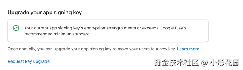 在google console后台找到对应app,从App Integrity中找到App Signing的Setting,找到升级App签名,注意⚠️:只有一次机会。