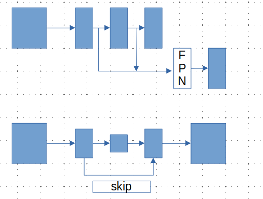 对于检测任务常使用FPN,抓住物体的多尺度特征,处理物体不同尺寸的问题。