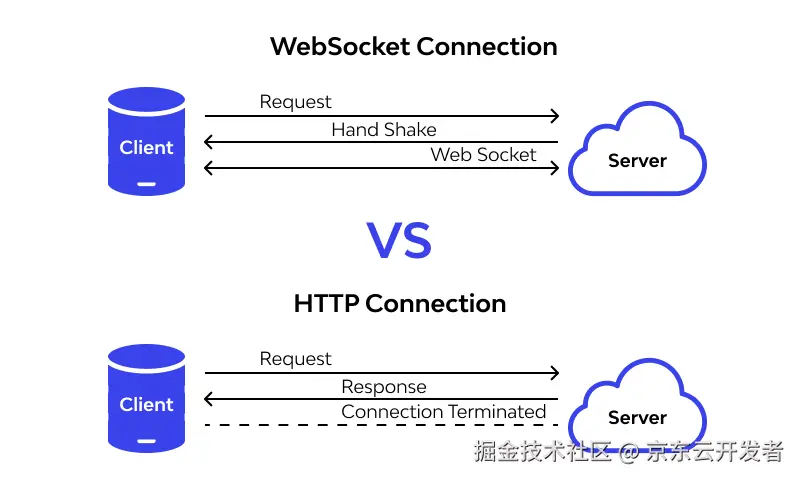 WebSocket 连接的建立依赖 HTTP 协议完成 "握手",本质是将 HTTP 连接升级为 WebSocket 连接;