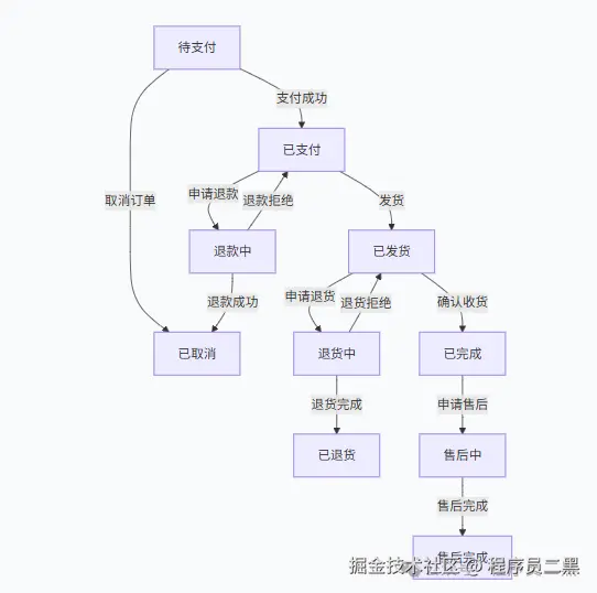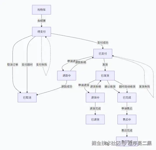 首先,我们为电商订单系统设计一个详细的状态迁移图: