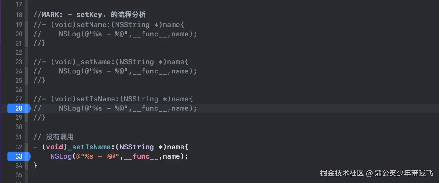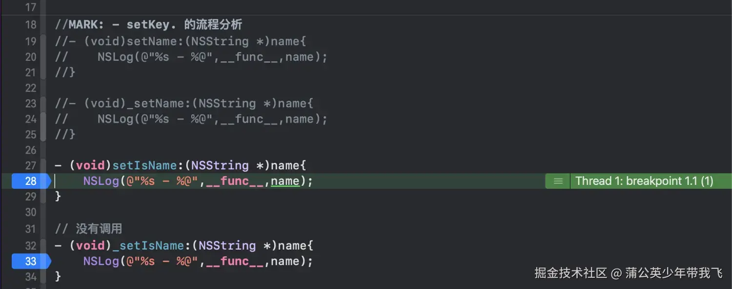 从上面getter取值顺序我们可以看到有**get<Key>** -> <key> -> is<Key> -> _<key>四个方法,而此处的 setter只有 set<Key>: → _set<Key>:两个方法。显然,对 setter的第一步骤有所怀疑,那就探索一下,实现 setIs<Key>和 _setIs<Key>,如图: