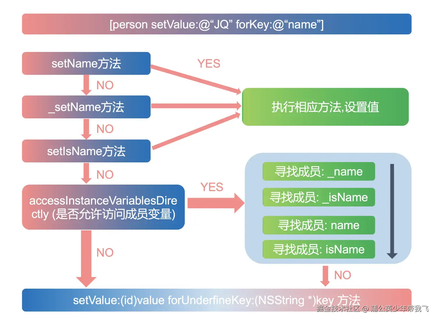 根据上面的流程,梳理一张**setValue:forKey:**的流程图: