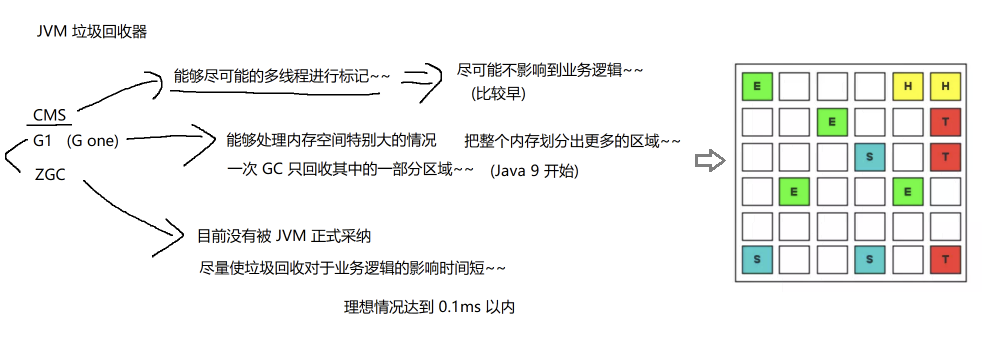上面的分代回收过程,严格地说不是真实情况,而是一个简化版,是一种思想方法。垃圾回收器实现的时候,需要考虑到效率问题,对业务代码是否有影响。