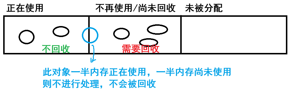 这些被释放的内存的地址是 "离散"的,不连续的,申请内存都是申请连续 的内存空间,可能会导致总的空闲空间充足,但是尝试申请一个大块内存,申请失败!进程中,哪些对象为垃圾是随机的,这种方案很可能会在频繁释放中产生大量的内存碎片。