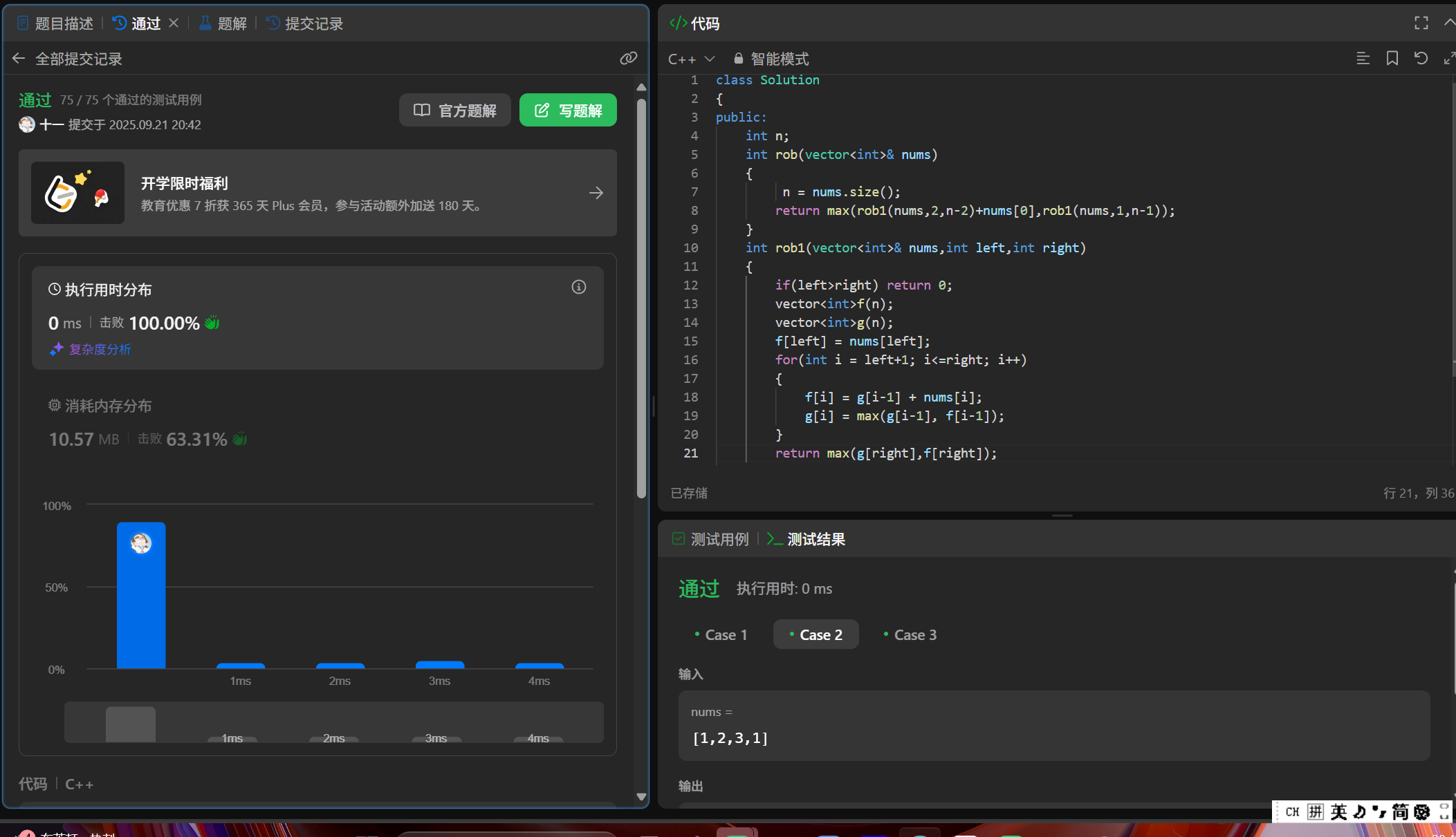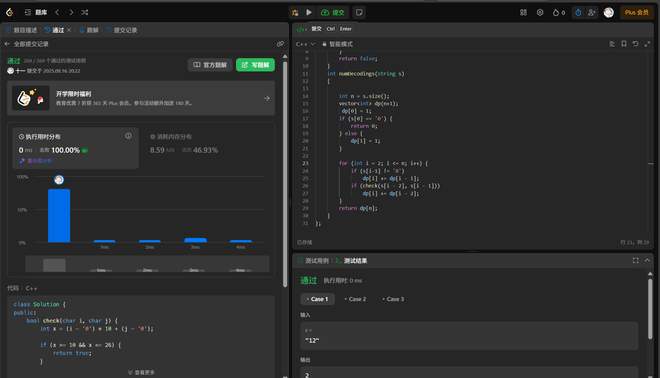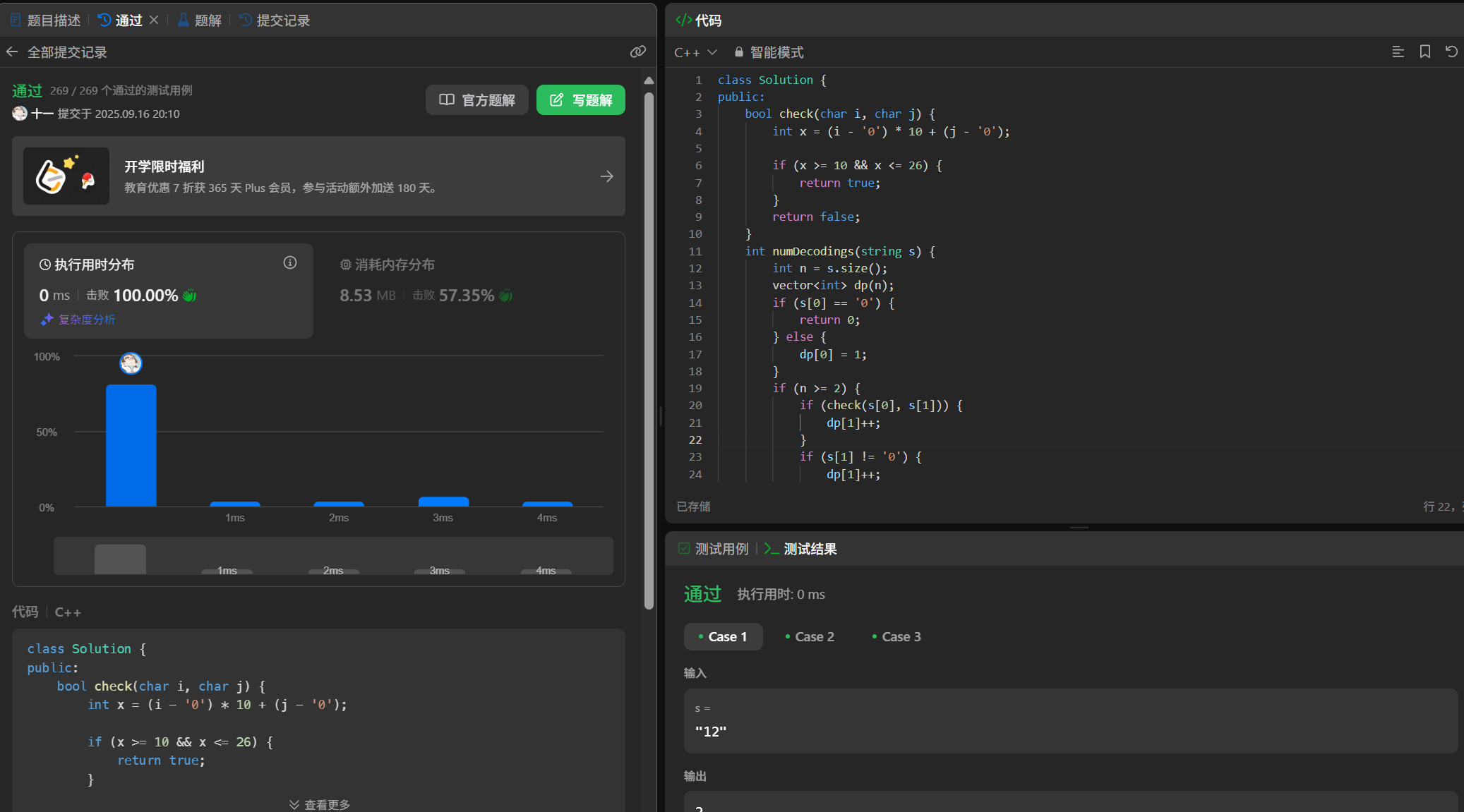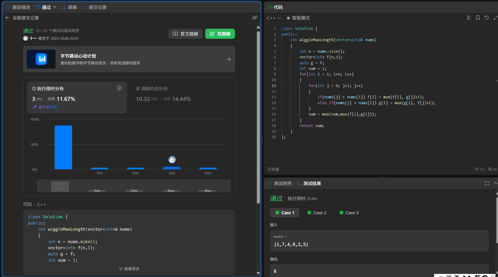 我们发现当i = 0 ,1,2的时候会越界,所以我们将dp[0] = 0 ,dp[1] = dp[2] = 1首先设置