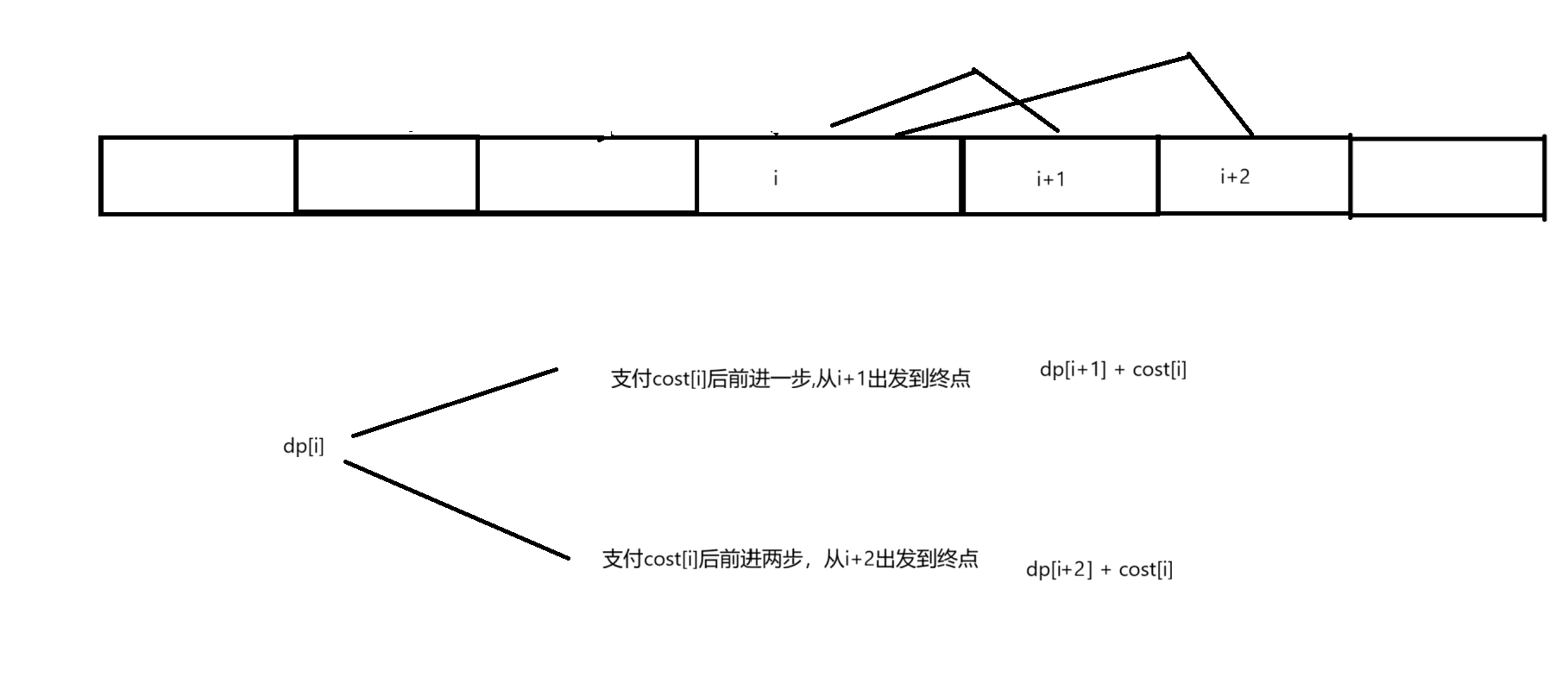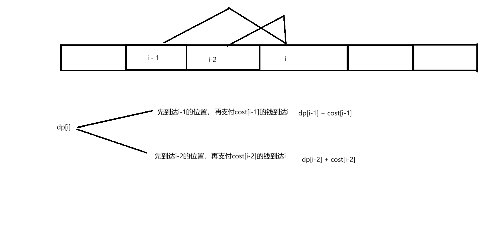 根据上图dp[i] = min(dp[i-1]+cost[i-1],dp[i-2]+cost[i-2])