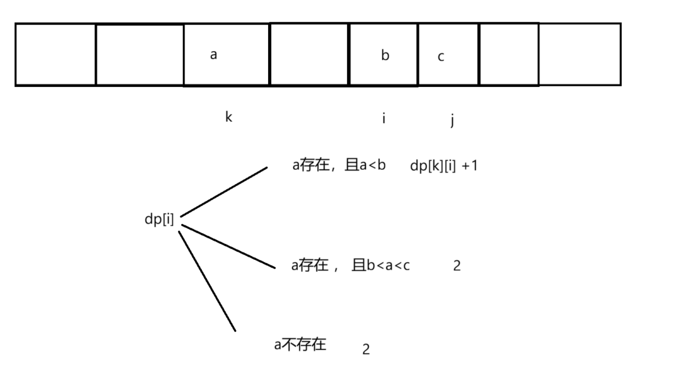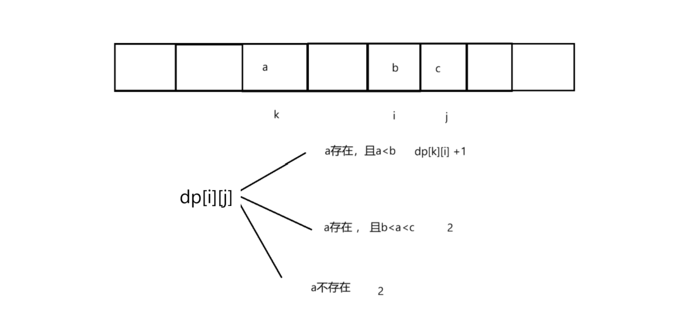 优化:一边dp ,一边保存离它最近的元素下标(为了确保距离倒数第二个元素最近,所以我们需要固定倒数第二个元素的位置)