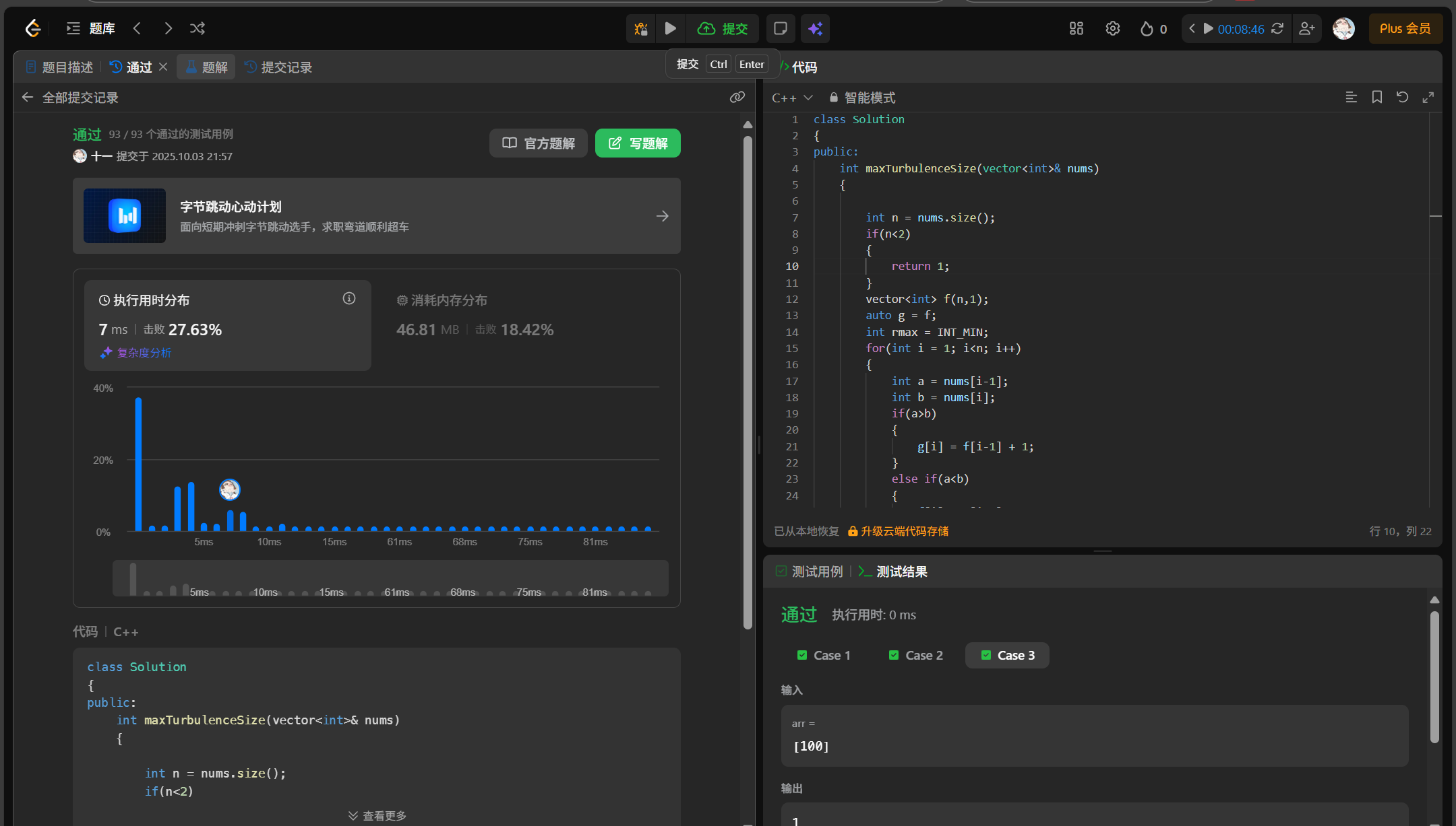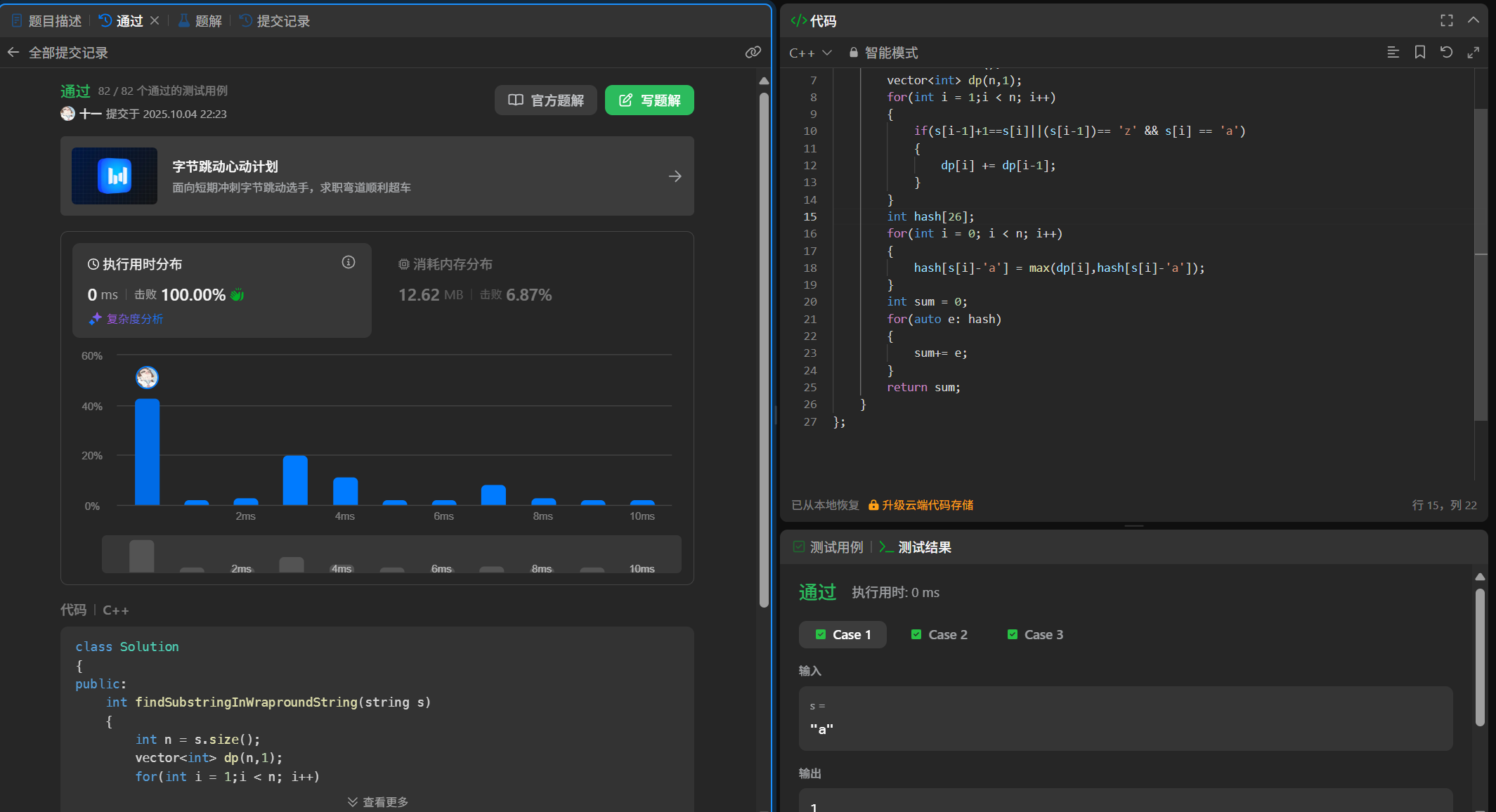 如上图我们以i为结尾来观察以下:dp[i]来源于三个地方dp[i-1] ,dp[i-2],dp[i-3],所以dp[i] = dp[i-1]