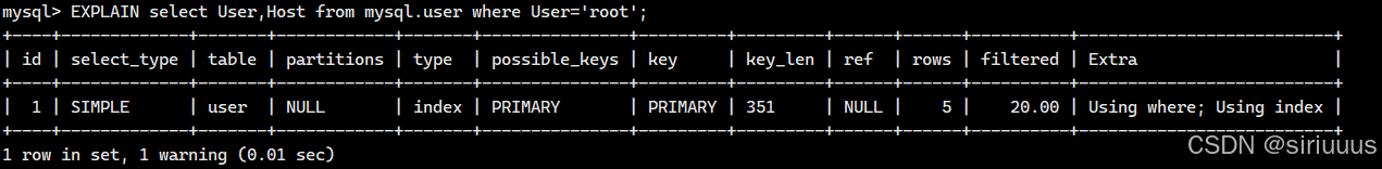 type:访问类型(ALL 表示全表扫描,性能最差;ref/range 表示使用索引,较优);